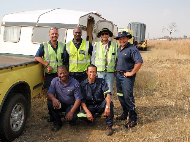 初来訪した2008年9月事前調査時は、治安が最悪の状態と聞いていましたので、この先どうなることやらとの印象を強く受けたものです。2か所あるサイトへの輸送距離もリチャーズベイ港から550km、1,300kmと遠く、食事は、宿は、身の安全は、ライオンや毒ヘビに襲われはしないかと不安だらけでした。しかし、今や現地サブコンの白人、黒人の支援を受け身の安全を第一に行動し、これまで傷害、窃盗、恐喝、事故等に合うことなく作業に集中できていることに対し、お客様から感謝されております。
